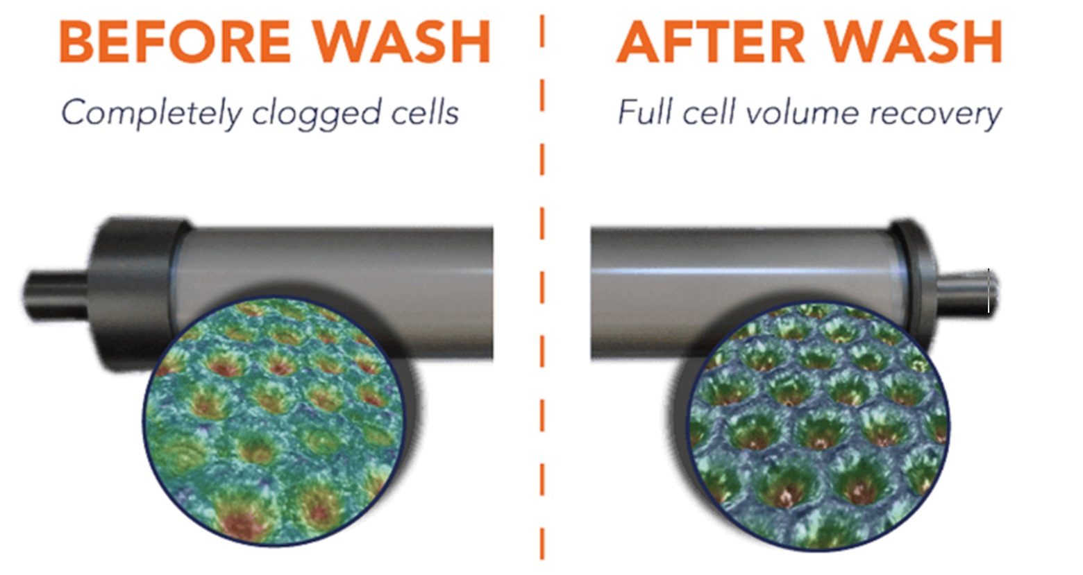 For maximum maintenance of anilox cell volume, rolls should receive a thorough cleaning as-soon-as they are removed from the press. This can consist of hand cleaning with a brush as described above, or placing the roll in a machine specially designed for roll cleaning. There are several technologies used to deep clean anilox rolls, including ultrasonic, pressure, media and laser cleaning.